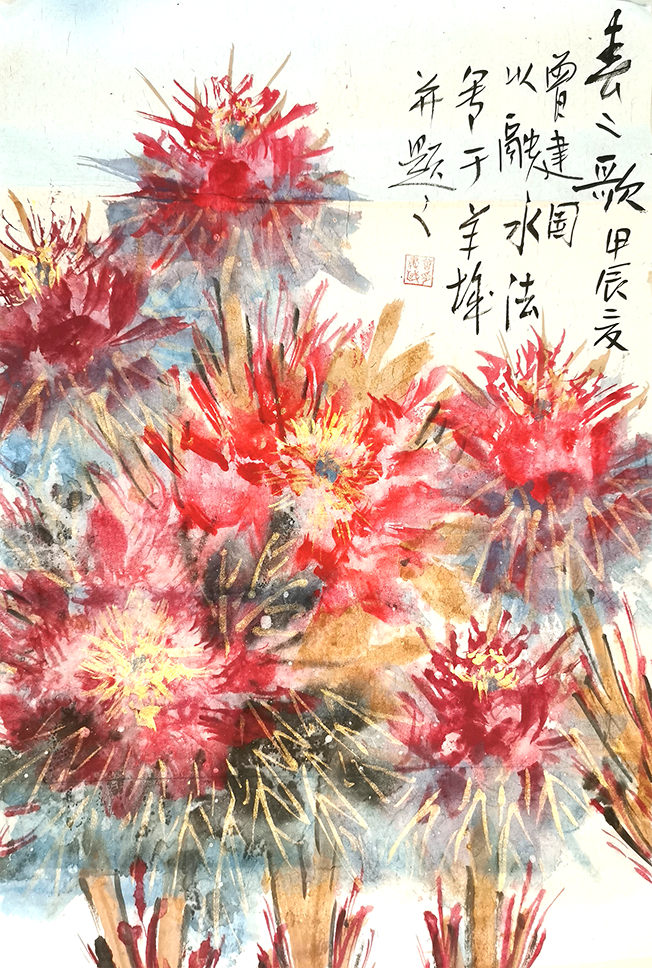 《四海同春》牡丹图入选参加第33届奥运会法国巴黎国际艺术交流展,获评金奖。
