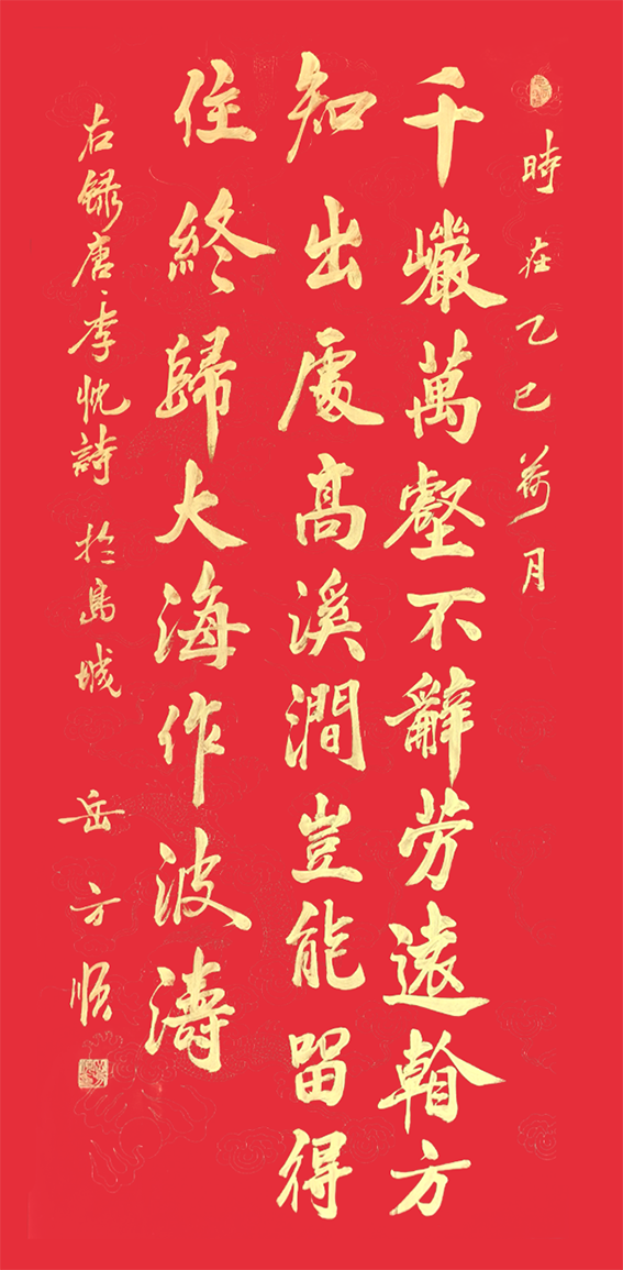 为河南汤阴县岳王庙题写下了“三代祠”的匾额。为《走进中国艺术大师》一书提名,多幅作品被《走进中国艺术大师》、《中国当代艺术名家》两书吸收选用。书法作品,还先后赠送了国民党名誉主席吴伯雄先生、国民党主席马英九先生以及国民党的老将军岳天先生。还给中国人民解放军诸多的老将军赠送了书法作品。同时,还把许多书法作品赠送给社会各界朋友,收到将军们和众多朋友的广泛赞誉。作品先后在《人民日报》、《中华盛世》、《中国文化报》、《中国书画报》、《民生周刊》等杂志正版刊登。先后被中央电视台、“新华网”华人会客厅、山东电视台“天下收藏”频道等采访。书写的毛主席《沁园春·雪》长卷被人民大会堂收藏。