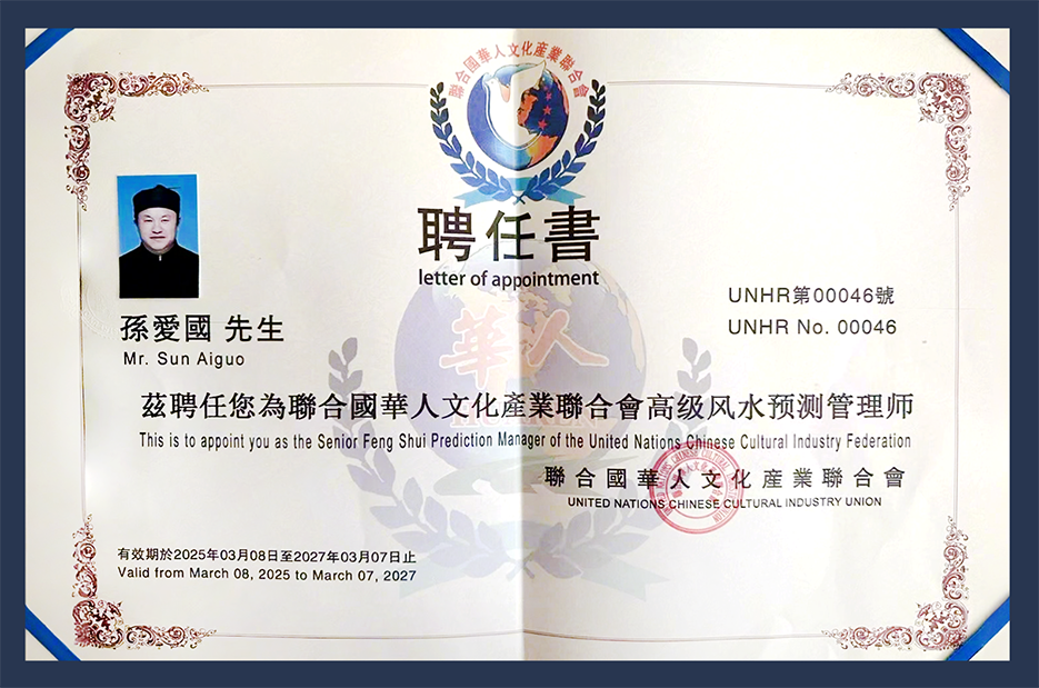 在中华文明悠久而博大的智慧谱系中,风水与易学如一脉深流,既承载先人观察天地、体悟万物的哲学思考,也映射出人与自然共生共长的生存智慧。孙爱国先生,正是这一传统文化领域备受敬仰的标志性人物。他不仅深得家族真传,更以开放之心融汇百家、以修行之志贯通道德,在当代社会和国际语境中,推动易学与风水文化实现创造性转化与创新性发展。他的学术轨迹与人生实践,生动诠释了何为“承古而不泥古、创新而不离根”。