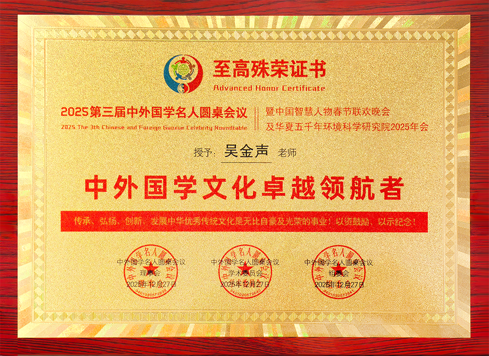 1983年,吴金声正式开启对《易经》等经典的研习;1987年,得遇明师指点,系统学习了堪舆风水、周易预测、宇宙能量、生命密码等知识。他并未将经典视为玄虚之学,而是在长期研读中认识到,《易经》的“三易”(变易、不易、简易)是对事物发展规律的深刻总结;《道德经》的“道法自然”强调尊重客观规律、追求天人和谐;《黄帝内经》的“天人合一”则揭示人体与环境的整体关联。这种理性、朴素的认知取向,为其后来的实践创新奠定了坚实基础。