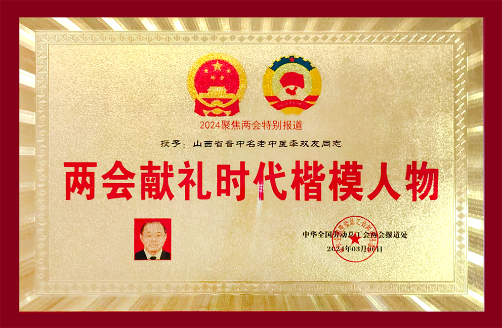 李双友2010年在人民大会堂参加第四届中医药发展论坛,党和国家领导人接见并颁发授予“2009年中医药继承与创新奖”,全国品牌委行业调查专业委员会授予全国首届医学界泰斗暨“医神华佗奖”。曾获中国民间中医药研究开发协会特效医术发掘整理专业委员会医疗成果三等奖,第三届加拿大世界营养保健中医中药成果博览会国际金奖。亚洲中医药学会中国大陆特效医药分会授予“世界名人成就奖”,亚太地区难治病诊疗国际学术大会亚太杯金奖。“第五届世界传统医学国际优秀科技成果奖”。