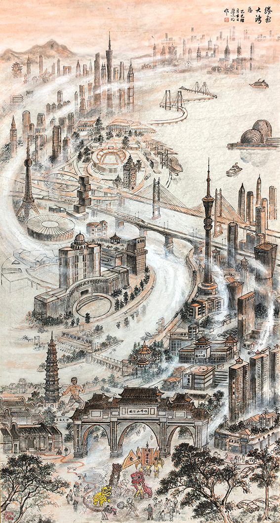 《腾飞大湾区》创作构想:一直有个念想,怎样用一幅作品表现大湾区的精神?
