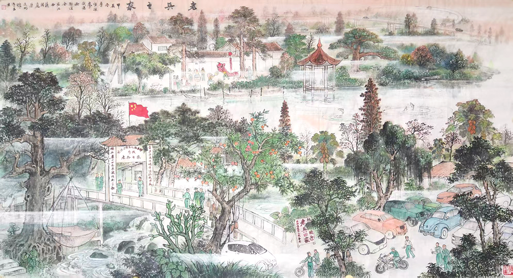 顺德是粤港澳大湾区的中心,顺德制造誉满全球,从制造强区向智造强区成功转型,深度参与区域及国际合作,走在时代的前沿。作品从家乡出发,取大湾区各地最突出的标志性建筑,将艺术之美和自然之美融合在一起。 画作采用s型构图,首尾呼应,虚实结合,虚实相生,生生不息,富有张力和现代感,寓意大湾区精神既植根于中华大地又面向世界。画境画意,见证了国家由积弱贫穷到独立自主,屹立于世界民族之林,充分表现改革开放建成小康社会,迈向现代化强国的奋斗历程。