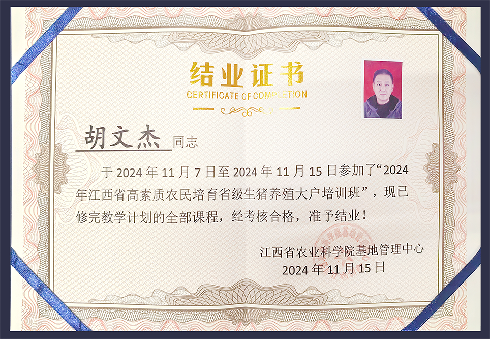 胡文杰始终保持着"空杯心态",不断学习创新。2023年入选农业农村部"头雁"项目,在中国农业大学系统学习生态农业;2024年参加江西省生猪养殖大户培训,掌握智能化技术;用三年时间在广州仲恺农业工程学院攻读畜牧兽医专业,构建起坚实的技术壁垒。与科研院所的合作更让萨香农业插上了科技的翅膀,通过联合攻关,不断升级"种—养—能—肥"四位一体循环模式。