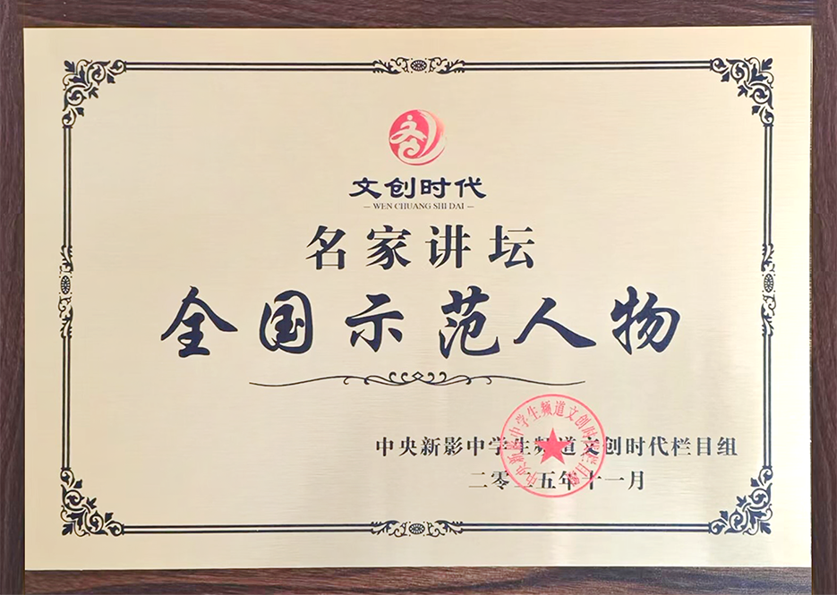 2025年11月,在央视一级演播厅接受央视文创时代栏目《 名家讲谈》艺术人生专题采访,并授予2025年度最具影响力国学名家荣誉称号和《全国示范人物》荣誉奖项。