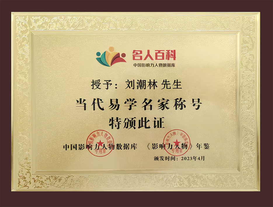 2023年三月,荣获诸夏周易文化研究院和网络媒体联盟评选为【东方国学先锋人物】。