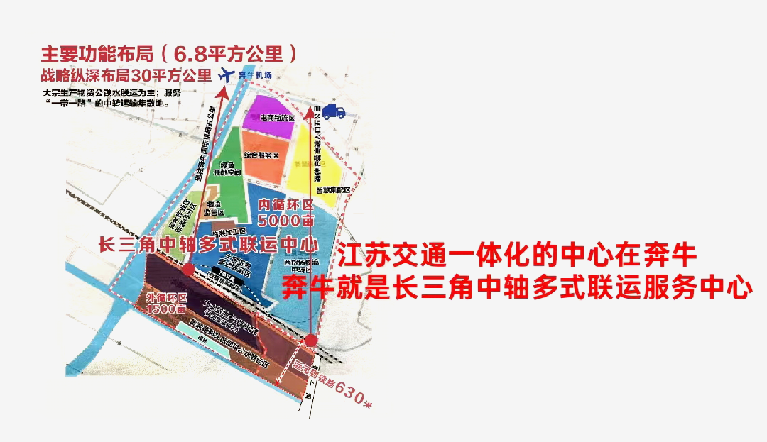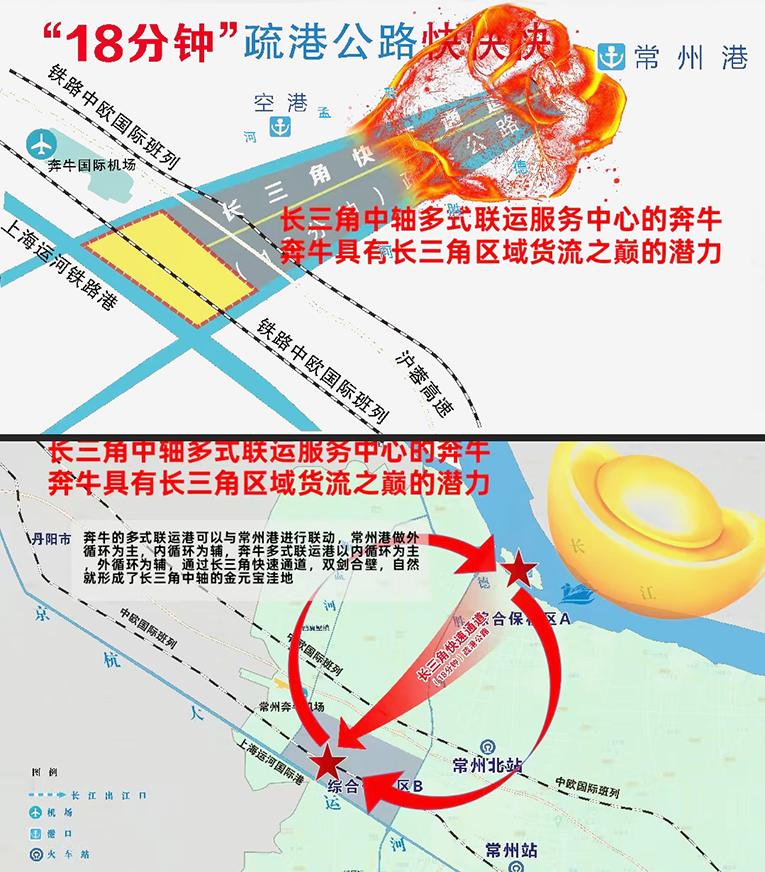 盛雷认为,必须让人充分认识到奔牛在长三角一体化中不可替代的战略地位。这里不仅拥有“公铁水空”四位一体的立体交通网络,在6.5公里半径内集聚四种运输方式,更地处长三角地理中心,恰位于南京与苏州之间的关键节点,是连接上海与南京走廊的天然枢纽。向东经无锡、苏州直达上海,向西过镇江直抵南京,如此区位若不充分发挥,长江经济带与长三角一体化的战略将难以真正贯通。