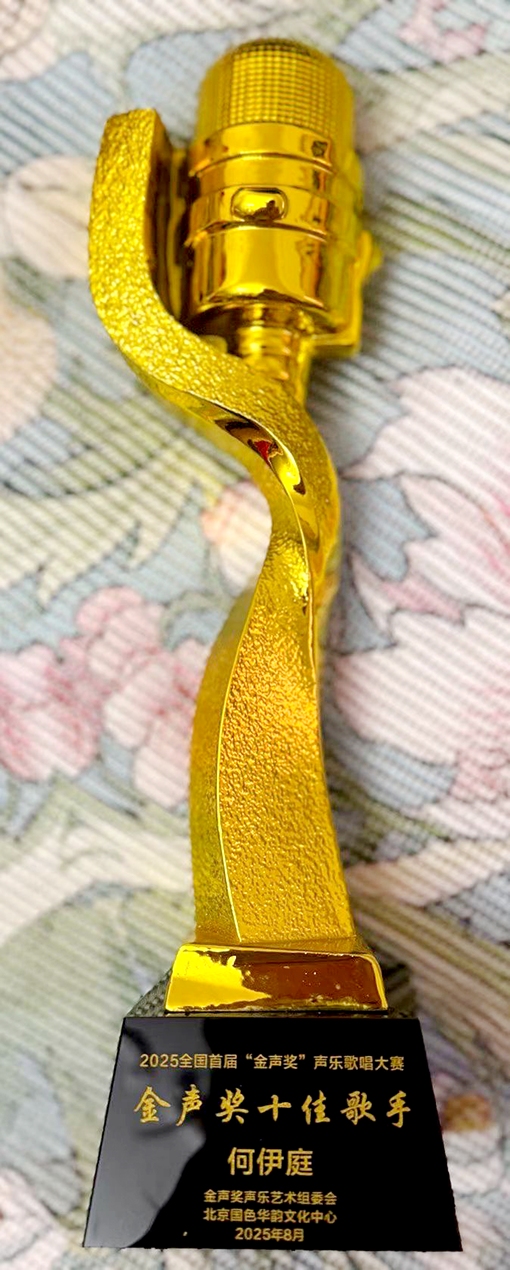 2025全国首届“金声奖”声乐歌唱大赛演唱《微微》“荣获银奖和金声奖最佳歌手。”;