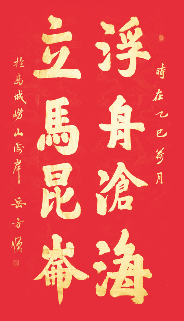 岳方顺,1952年12月生,山东省东营市人,大学学历,系岳飞第三十一代嫡孙。现任中国东方文化研究会副会长,中国齐鲁国学书画研究院副院长、中国人民艺术家协会副会长、中国书法艺术家协会理事、中国榜书艺术研究会艺术委员、中国书法家协会会员、中国楹联协会会员、岳飞思想研究会高级顾问。