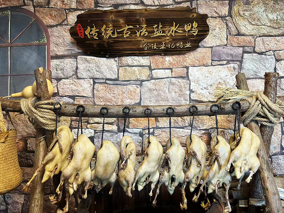 除了技艺的坚守,王洪民更赋予金陵王记文化的温度。他对《红楼梦》里第六十二回的“酒酿清蒸鸭”情有独钟,曾专门考据曹雪芹笔下的鸭菜做法,复原经典,还因此被江苏省红楼梦学会吸纳为会员。他认为:味道不仅是舌尖上的享受,更是文化记忆的唤醒。吃一口王记传统古法盐水鸭,仿佛穿越进红楼深院,品味那曾属于贵族闺阁的芬芳。