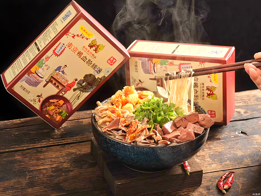 “盐水鸭要的是鲜香不腻,入口微咸中带甘;烤鸭则讲究色泽红亮、皮脆肉嫩。”王洪民深谙此道,而他最引以为傲的,是那道以鸭高汤为底的招牌“鸭血粉丝汤”——一勺入喉,汤香醇厚,鸭血滑嫩,粉丝劲道,味蕾与记忆仿佛在此刻回归故乡。