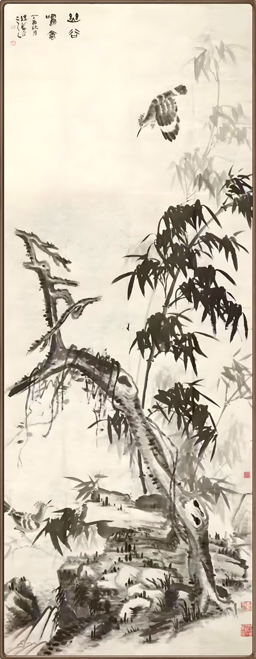 《幽谷鸣禽修竹图》253x96cm
