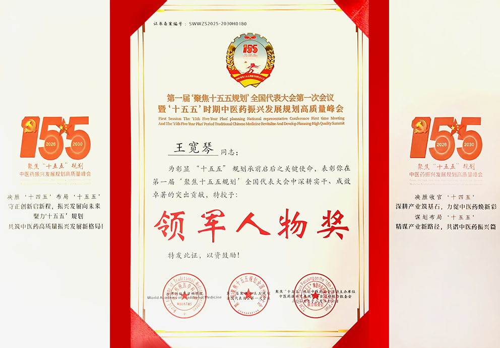 王宽琴的中医之路,始于血脉里的传承。其家族三百年悬壶济世,积淀下丰富的临床经验与深厚的医德底蕴。自幼耳濡目染,药香与医典成为她成长的底色。五岁时,她便随父研读《伤寒论》《金匮要略》,记方识药如数家珍,祖父捻药称量的指尖藏着对医道的敬畏,父亲深夜研读的身影刻着对传承的坚守,“中医之髓,在天地之道与生命哲学”的祖训,早已融入她的血脉,成为她日后悬壶济世的精神坐标。这份自幼浸润的中医启蒙,为她种下了守护生命的初心种子,祖父为照顾老祖母放弃外发展机会的孝行,更让她早早懂得“医者仁心”不仅是技艺的追求,更是对生命最本真的敬畏-医者,当以仁心济世,以道心承术