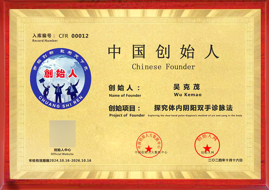 吴克茂大师,1965 年生于广东潮州大吴村,后拜师中南海保健专家胡维勤教授。他是《黄帝内经》古法中医非遗传承人。他扎根经典,更在实践中守正创新,“探究体内阴阳双手诊脉法”创始人,双手诊脉昔在秦汉时期扁鹊三兄弟会这种诊法,由于历史战乱纷争,佚亡......等原因,相当于遗失几千年的枝艺又重新复活,造福人类文明……于疑难重症领域独树一帜,以精湛医术与仁者之心,帮助众多患者重拾生命希望。