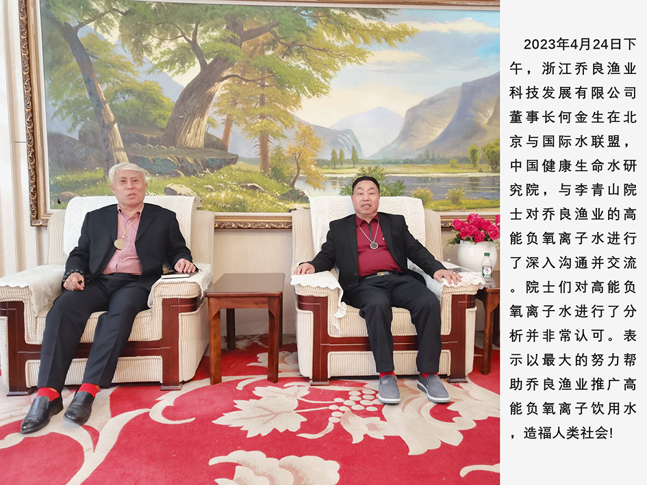 2023年4月24日在北京与《联合国水联盟》李青山院士会见,对高能负氧离子饮用水进行了对话交流,并探讨了高能饮用水的优势发展前景和目标。