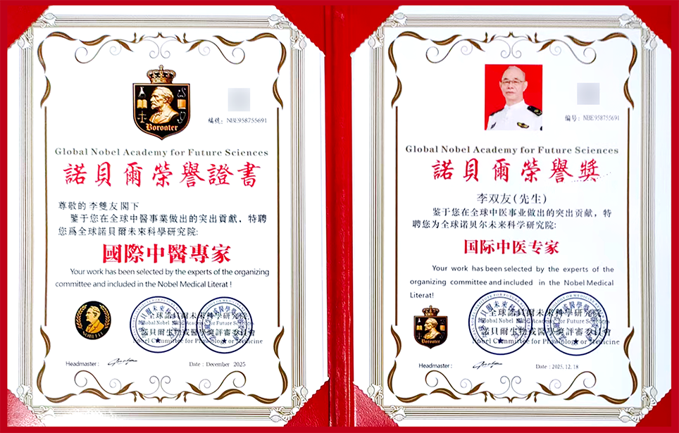 李双友2010年在人民大会堂参加第四届中医药发展论坛,党和国家领导人接见并颁发授予“2009年中医药继承与创新奖”,全国品牌委行业调查专业委员会授予全国首届医学界泰斗暨“医神华佗奖”。曾获中国民间中医药研究开发协会特效医术发掘整理专业委员会医疗成果三等奖,第三届加拿大世界营养保健中医中药成果博览会国际金奖。亚洲中医药学会中国大陆特效医药分会授予“世界名人成就奖”,亚太地区难治病诊疗国际学术大会亚太杯金奖。“第五届世界传统医学国际优秀科技成果奖”。