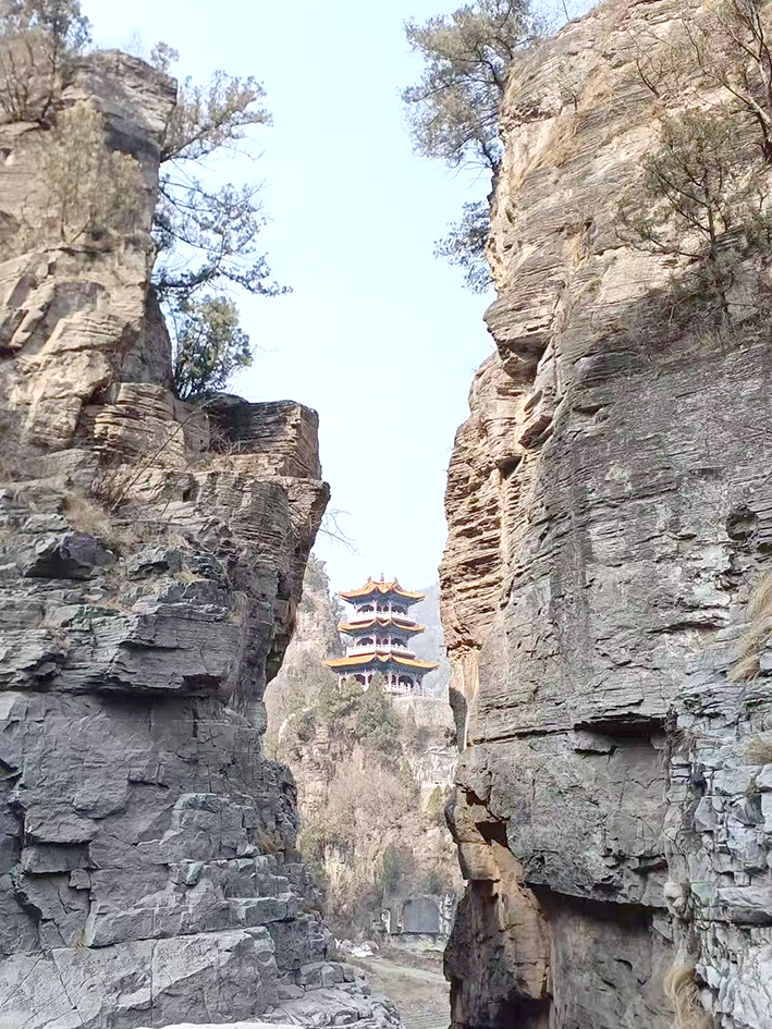 河南焦作市修武县云台山镇金山大乘寺,它是震旦震字形的原始出处,更是山字的原始出处,周围群山形势也是太极图的出处,山前为大乘寺,山背面和掌山(是寺院大雄宝殿前佛后菩薩来源),朱华村周围山,是太极图的另一半,太极图中的两点,一个是这个石柱勾的这个石柱,另一个是朱华村山上的一个石坐椅。