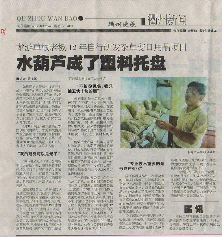 利用外来有害杂草制造全降解植物塑料:技术突破与产业前景——朱秀刚