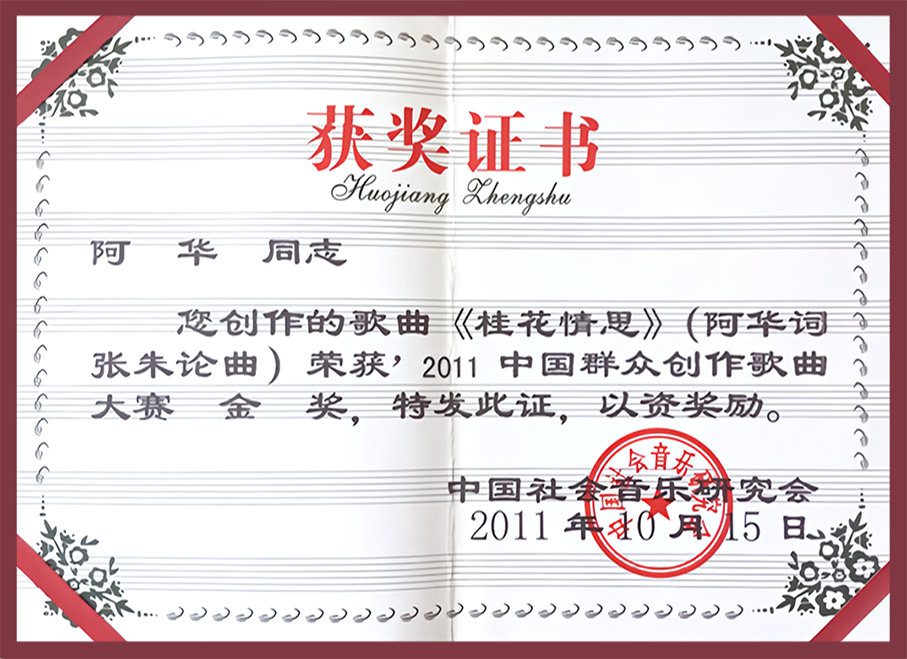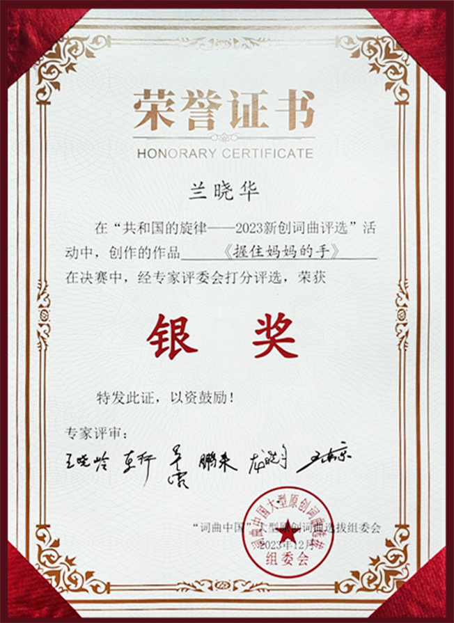 词作者兰晓华(笔名:阿华)目前是中国音乐文学学会会员、中国音乐著作权协会会员、桂林市音乐家协会会员、南宁市音乐家协会会员和广西音乐家协会会员。